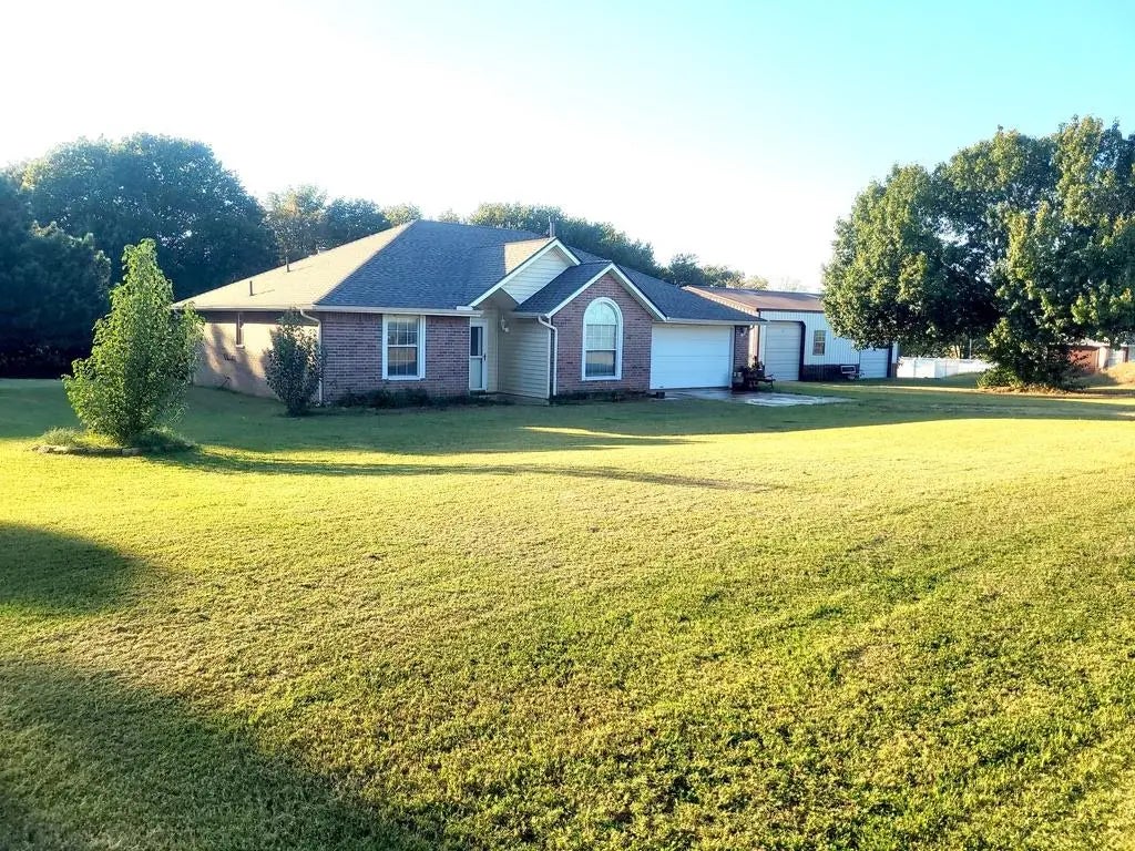 Nestled on 1.13 acres in a quiet, friendly neighborhood just outside city limits, this charming 3-bedroom, 2-bath home offers the perfect blend of comfort and convenience. Step inside to discover a bright, inviting layout featuring a cozy wood-burning fireplace, central heat and air, and plenty of natural light. Outside, enjoy relaxing evenings on the patio overlooking the spacious yard—ideal for entertaining, play, or simply unwinding. The property also features a large 40x20 shop with electricity and two insulated, automatic garage doors with remotes, providing an ideal space for hobbies, projects, or extra storage. The home includes an attached 2-car garage and uses well water, offering both functionality and efficiency. With a new AC and roof installed within the last two years, the home is truly move-in ready. Conveniently located less than two miles from the desirable NRC school, close to shopping, and with easy access to I-40, it also offers a short commute to Tinker Air Force Base—making it perfect for those seeking peaceful country living with all the benefits of being close to town.