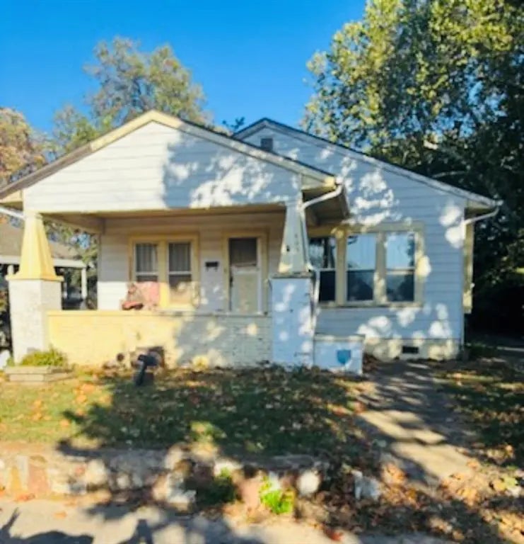 Three good sized bedrooms with average sized closets and a nice bathroom with tub, shower, linen cabinet, and sink. It features a large living room and formal dining area. The open kitchen with tons of cabinet space, long countertops, and space for regular sized appliances. Good size back yard and a detached garage at the end of a long driveway. Roof replaced 2023, This beautiful frame home in the center of Shawnee, OK has a timeless large covered front porch, with room to sit outside on nice day. Close to shopping, restaurants, major Hwy. Sold As Is