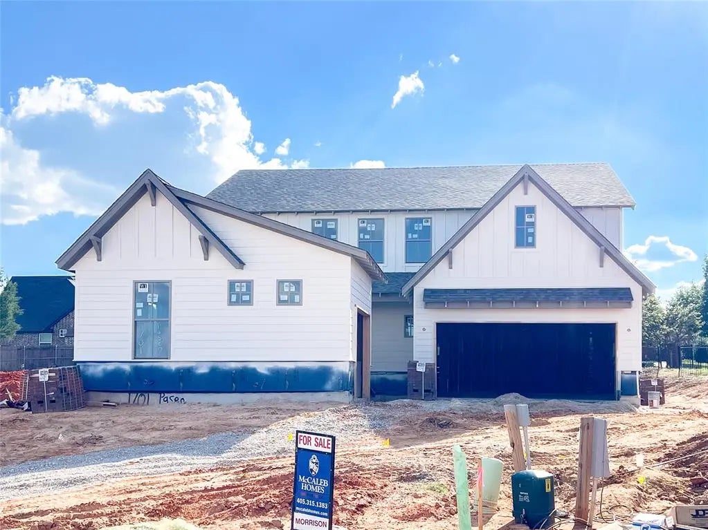 Striking Modern Farmhouse in popular Town Square neighborhood! Our Morrison plan has the perfect layout with 4 bedrooms, 3.5 baths, a large kitchen, dining space, a dedicated study with built-in cabinetry & French doors, an upstairs game room, and a 3-car garage. The open concept floor plan draws you from the entryway into the living room that features a brick to ceiling fireplace and is filled with natural light from the large windows. You will love the site-finished wood flooring throughout the main entertaining areas of the home and the primary bedroom! The primary suite has separate vanities, a free-standing tub, an oversized spa glass shower, and a walk-in closet that connects near the laundry. Home under construction - finishing Early 2026. Town Square is Edmond's historically inspired community featuring Town Square Residents Club, resort-style pool, fitness center, youth rec center, playground, community garden, wooded green belt with walking trails, and a lake with fishing dock.