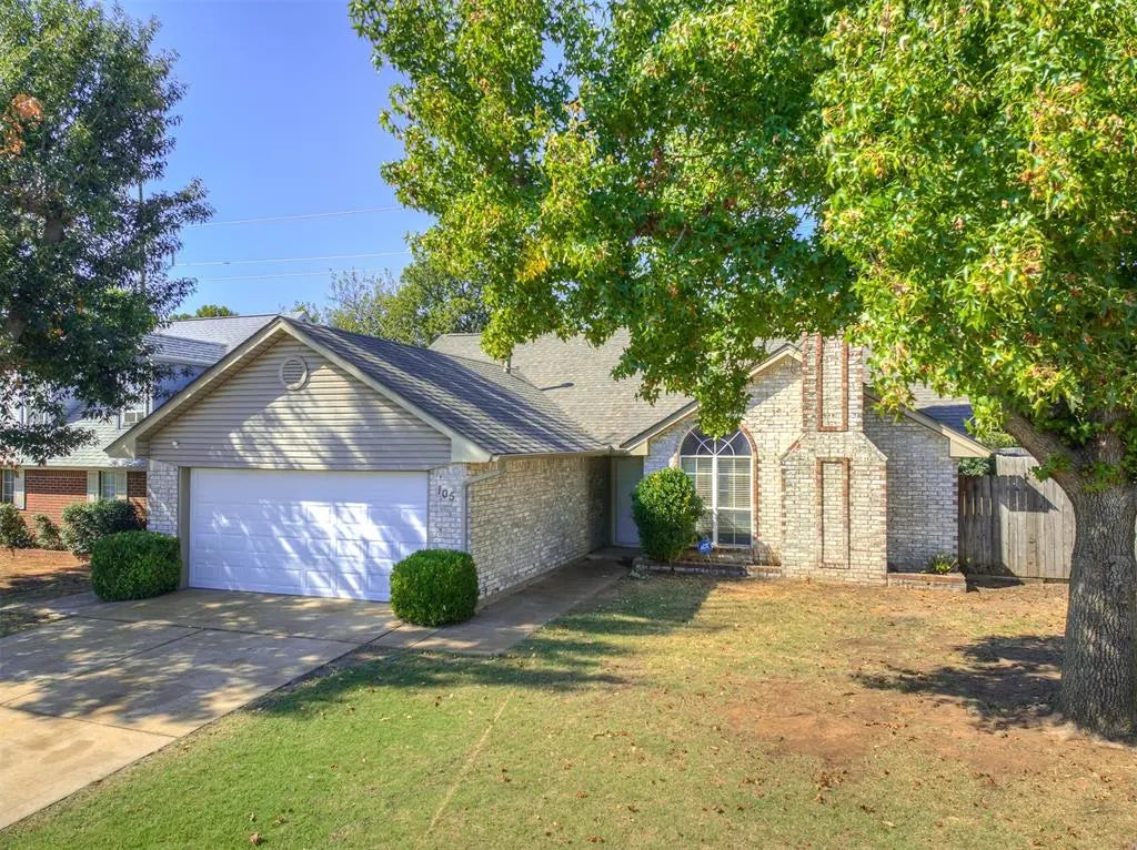 Right in the heart of Edmond, this conveniently located 3 bedroom 2 bathroom home also has a 2 car garage with a brand new garage door. Once you walk in the home, you'll be in the living room with tall vaulted ceilings, a beautiful brick fireplace & built in bookshelf. The primary bathroom has a walk in shower, a large soaking tub, double vanities & granite countertops. The bedrooms all have new carpet, & the split floor plan keeps the primary suite very private. In the heart of the home, you'll find the kitchen with granite countertops, an island & dining area with room for a large kitchen table. The fully fenced backyard has an extra large covered patio with access from the kitchen and from the primary bedroom, so you can enjoy your morning coffee outside. Come visit & make a smart investment.