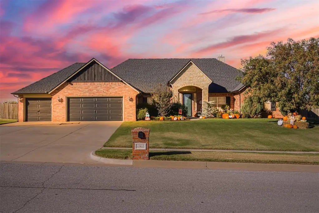 WELL-MAINTAINED, ONE-OWNER HOME WITH AMAZING OUTDOOR LIVING! Located in highly sought-after Sundance Ridge, this beautiful home has a fantastic layout, including a dedicated study and open kitchen. The home sits on a half acre MOL and features a pool with deck and an extended patio for your dream outdoor living. The roof (Class 3 hail-resistant shingle), gutters and garage doors were replaced in 2023. The home is ready for Oklahoma weather with an in-ground storm shelter and a generator hookup in case of a power outage. The neighborhood features a gated entry and a stocked fishing pond. Come see it today!