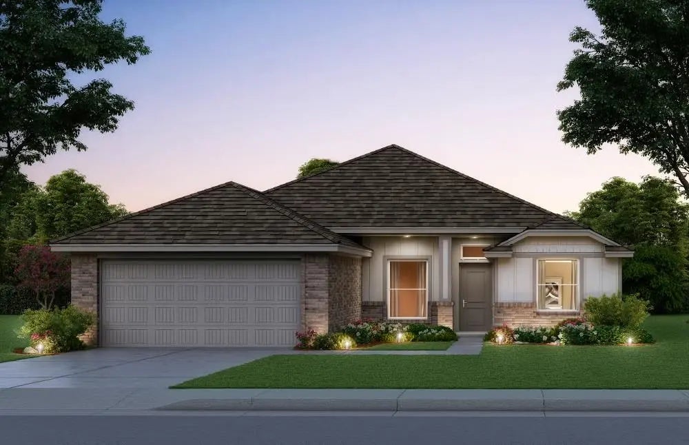 Experience smart design at its best with this brand-new home that maximizes every inch of usable space! The L-shaped kitchen and spacious island create an incredible prep area and a seamless workflow, making cooking and entertaining a breeze. Featuring polished touches like under-cabinet lighting, a 5-burner gas range, quartz countertops, and wood-look tile flowing throughout the main living areas, this home is made for memorable gatherings. The primary suite is thoughtfully separated from the other two bedrooms and office, offering a private retreat complete with a large soaking tub, separate tiled shower (thanks to the tankless water heater!), and an expansive closet. Packed with energy-efficient features, this home is as practical as it is stunning. Located just minutes from the University of Oklahoma, Lake Thunderbird, Sooner Mall, I-35, and numerous dining and shopping options. Bellatona also features a community playground and a welcoming neighborhood feel. Whether you’re a first-time buyer, or young professional, this home offers the perfect blend of comfort, location, and value. Call today to check construction progress and secure your home before it’s gone!