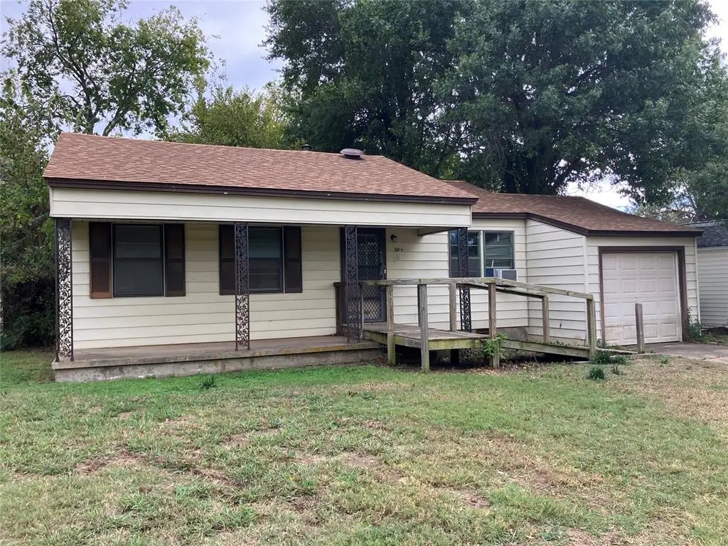 One owner home. Probate. Court order allowing sale achieved. AS IS sale. Roof believed to be 2-3 years old. Central heat and air. House features 3 beds, 1 bath, 2 living and one car garage with loft. Hardwood floors and 2 spacious living rooms. Indoor laundry hookups (2nd living room). Some original vintage finishes, such as doors and lights. Kitchen does have a newer tile backsplash (cabinet doors in bedroom closets). House will not qualify for FHA or VA loans. House in need of rehab throughout. Investors bring your ideas to prepare this house for a tenant or new homeowner. Currently has a wood ramp, but hidden underneath is a sidewalk to house and a covered porch. Vinyl siding and fenced backyard. Close to assigned schools (all located within the neighborhood), Tinker AFB, I-40 and MWC amenities and parks. MWC trail nearby. Perfect location for a Midwest City Bomber.