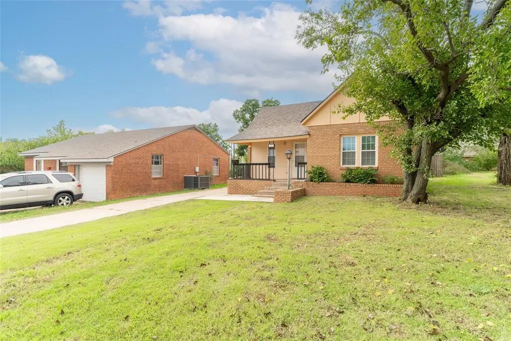 Exceptional property featuring completely remodeled 1,543 SF main house (3BR/2BA) PLUS separate 600 SF apartment (1BR/1BA) with independent entrance. Main house built 1920, extensively renovated with brand NEW ROOF, luxury tile & vinyl plank flooring throughout, spa-inspired bathrooms with designer tile work, custom kitchen with gray shaker cabinets & subway tile backsplash, stainless appliances included, crown molding, dedicated laundry room, & in-home STORM CELLAR. Apartment has been previously rented - separate driveway access, full kitchen. Covered carport, concrete drive, fenced backyard, mature trees. Established Clinton neighborhood near schools, shopping, parks. TRUE TURN-KEY condition - every interior feature new or updated. Zero deferred maintenance. Rare combination of luxury renovations, additional living space, storm safety, & Clinton convenience!