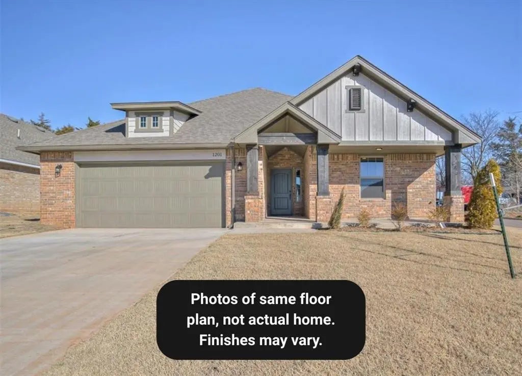 Ask about our incentives! The Zion is a beautifully designed 1,502 square foot floor plan located in Noble, just 10 minutes from the OU campus, offering efficient living without sacrificing comfort or style. This new construction home features 3 bedrooms, 2 bathrooms, and a 2-car garage, ideal for first-time homebuyers, growing families, or down-sizers. The open-concept layout connects the kitchen, dining area, and living room, creating a bright, welcoming space anchored by an electric fireplace. The primary suite includes a spacious bedroom (15' x 12'), a private bath, and a walk-in closet for everyday ease. Two additional bedrooms and a full hallway bathroom provide flexible options for guests, kids, or a home office. With a covered front porch, covered patio, and a dedicated utility room, this home delivers practical living with timeless appeal in a convenient Noble location.