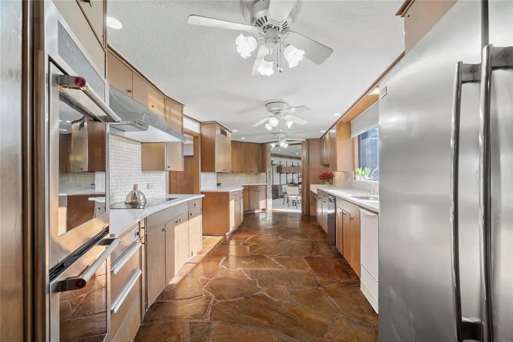 Step into a world of architectural splendor & timeless elegance with this Frank Lloyd Wright-inspired estate, offering nearly 8,000sqft (MOL) of meticulously crafted living space. Built in 1969 & thoughtfully expanded, this residence seamlessly blends mid-century modern design with luxurious amenities, creating a one-of-a-kind home that caters to both comfortable multigenerational living & grand entertaining. As you approach, a curved driveway & porte cochère set the tone for the grandeur within. You are welcomed w/a two-story foyer featuring a spiral staircase, leading to a library & great room with custom built-ins, wood-burning fireplace, & views of the solarium—a lush indoor greenhouse perfect for year-round gardening. Adjacent is a private bar room, ideal for entertaining! The NE wing of the home is dedicated to shared spaces, including a kitchen that serves as the heart of the home. Boasting a unique curved design, original cabinetry, quartz countertops, & walk-in pantry, it flows seamlessly into the formal dining, which is enveloped by the striking stone walls of the grand staircase. The SW wing of the main house hosts 4 spacious bedrooms, each with ensuite baths & ample closets. The primary suite offers a private office/sitting area, ensuite bath w/ dual vanities, & cedar closet. Upstairs, you'll find versatile bonus spaces, including a potential bedroom w/a ensuite bath & a NEW rooftop observation deck that delivers breathtaking views of Downtown OKC, Tinker AFB, & stunning Oklahoma sunsets. The connected 2,600 sqft guest wing is a haven of its own. Designed for harmonious co-living, it features a second kitchen, dining & living areas, a large primary suite w/a walk-in closet & ensuite bath, a flexible second room, and 2 full baths. With a separate entrance, it’s perfect for multigenerational living or private guest accommodations. The outdoor experience is equally remarkable, with 5 sprawling acres, a heated saltwater pool, swim-spa, & a 30x40 shop.